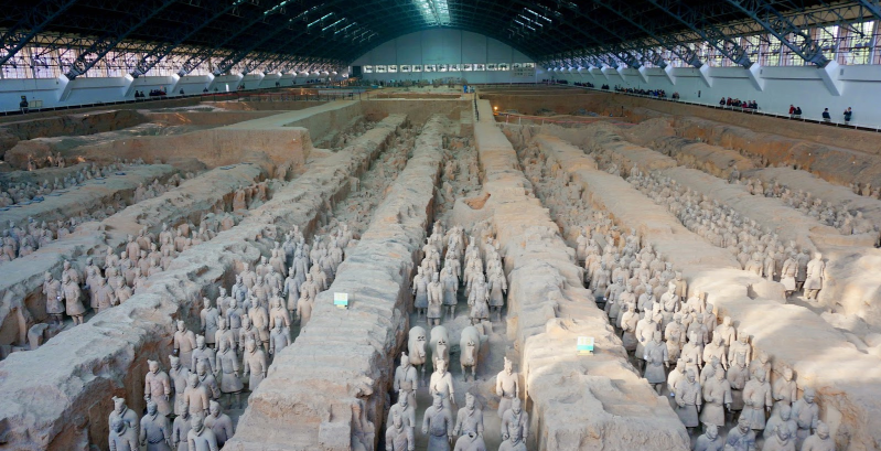 Dit zijn 8000 vreemde strijders en paarden in het Noord-oosten van China gemaakt van klei in 246 voor Christus. De figuren zijn gevonden in de buurt van Qin Shi Huang.